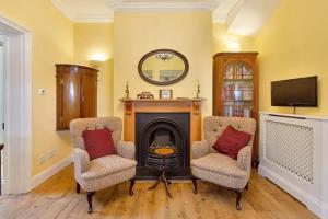 The villa features three separate bedrooms along with two bathrooms equipped with both a bath and shower. Guests can enjoy two living rooms furnished with seating areas, sofas, a fireplace, and entertainment options including a flat-screen TV with streaming services, Blu-ray player, DVD player and CD player. The fully equipped kitchen contains an oven, stovetop, microwave, dishwasher as well as coffee machine and tea making facilities.